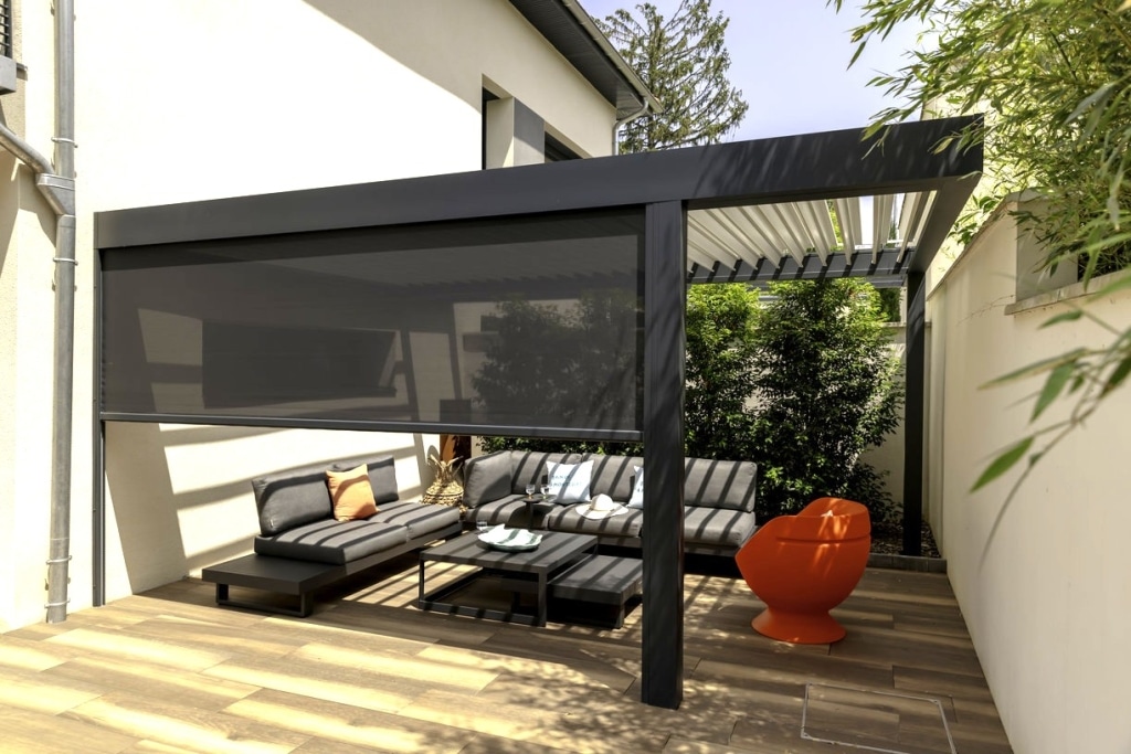 Ajoutez des stores verticaux ZIP, éclairage LED ou chauffage intégré pour plus de confort et d’intimité.